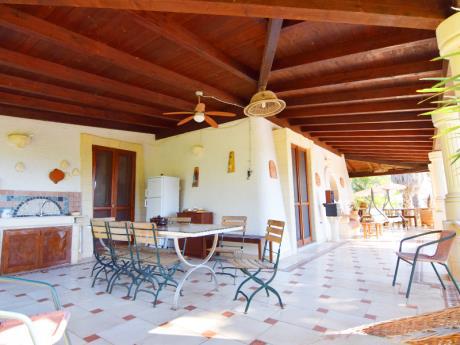 Meravigliosa villa con piscina immersa nel verde nelle campagne tra Ugento, Felline e Melissano a pochi minuti di macchina dalle meravigliose spiagge di T.S Giovanni e Gallipoli, la struttura e’ disposta su due livelli, a piano terra composta da grande cucina e sala da pranzo con 3 camere da letto, due camere con due letti singoli (che si possono unire) l'altra camera con letto matrimoniale, un bagno (con doccia idromassaggio), il piano ribassato e' composto da cucina, una sala grande e una camera con letto matrimoniale, due bagni, 2 zone lavanderia per un totale di 12 posti letto. Arredata con mobili nuovi di alto livello e completamente climatizzata. Spazio esterno fantastico con una stupenda piscina ad uso esclusivo, con veranda coperta per mangiare fuori , mobili da giardino e grande barbecue, bagno esterno con doccia, pineta privata esclusiva, parcheggio auto coperto. Ottima posizione, grazie alla superstrada a soli 500 metri si possono raggiungere le localita’ piu’ belle del Salento, circondata da 1 ettaro di giardino, ristoranti a 1 km circa e negozi di ogni genere a soli 2 km. Soluzione lussuosa ideale per chi intende trascorrere le vacanze nel salento con ogni comodita’ e in completo relax.