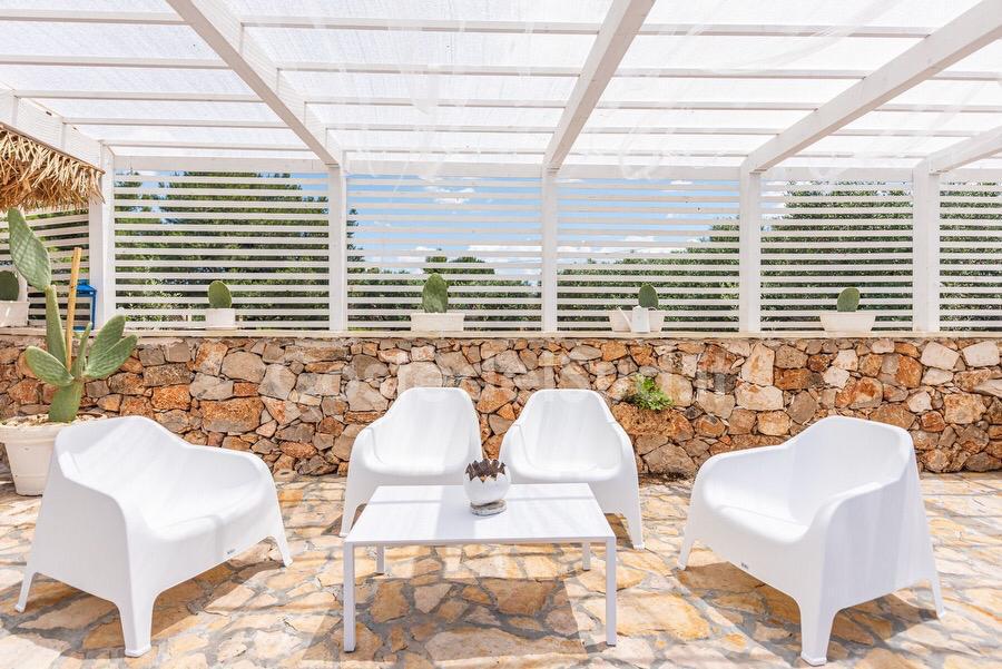 Meravigliosa villa con piscina completamente recintata immersa nel verde nelle campagne tra Ugento, Felline e Melissano a pochi minuti di macchina dalle meravigliose spiagge di Torre San Giovanni e Gallipoli, la struttura tutta con parquet tranne che la cucina e’ disposta su tre livelli, a piano terra composta da sala living collegata a una bellissima cucina attrezzata e bagno con vasca idromassaggio e due camere da letto, al piano primo invece camera da letto e bagno con doccia e doppio balconcino dove poter ammirare l'intera villa, infine nel piano seminterrato si trova una stupenda tavernetta dove la parte sitting e divisa dal letto matrimoniale da due separè inoltre si trova un altra camera da letto e un bagno con doccia(camere totali 4 piu' 1 camera con separè e 4 bagni 3 con doccia di cui uno esterno e 1 con vasca idromassaggio) per un totale di 11 posti letto. Arredata con mobili nuovi di alto livello e completamente climatizzata(tranne la tavernetta che è gia fresca). Spazio esterno fantastico con una stupenda piscina con trampolino(3 profondità 80 cm, 120 cm e 320 cm) ad uso esclusivo con sdraio mobili da giardino e gazebi e tavolini in vimini, gazebo in legno dove poter mangiare fuori a pranzo e a cena tranquillamente utilizzando il grande barbecue costruito in pietra, doccia esterna vicino alla piscina e ulteriore bagno con doccia, completamente circondata da uno stupendo giardino di 13.000 mq piantumato con alberi di ulivo, piante e fiori della macchia mediterranea e piante tropicali e prato verde, grande parcheggio. Ottima posizione, grazie alla superstrada a soli 200 metri si possono raggiungere le località più belle del Salento, ristoranti a 1 km circa e negozi di ogni genere a soli 2 km. Soluzione lussuosa ideale per chi intende trascorrere le vacanze nel salento con ogni comodità e in completo relax.