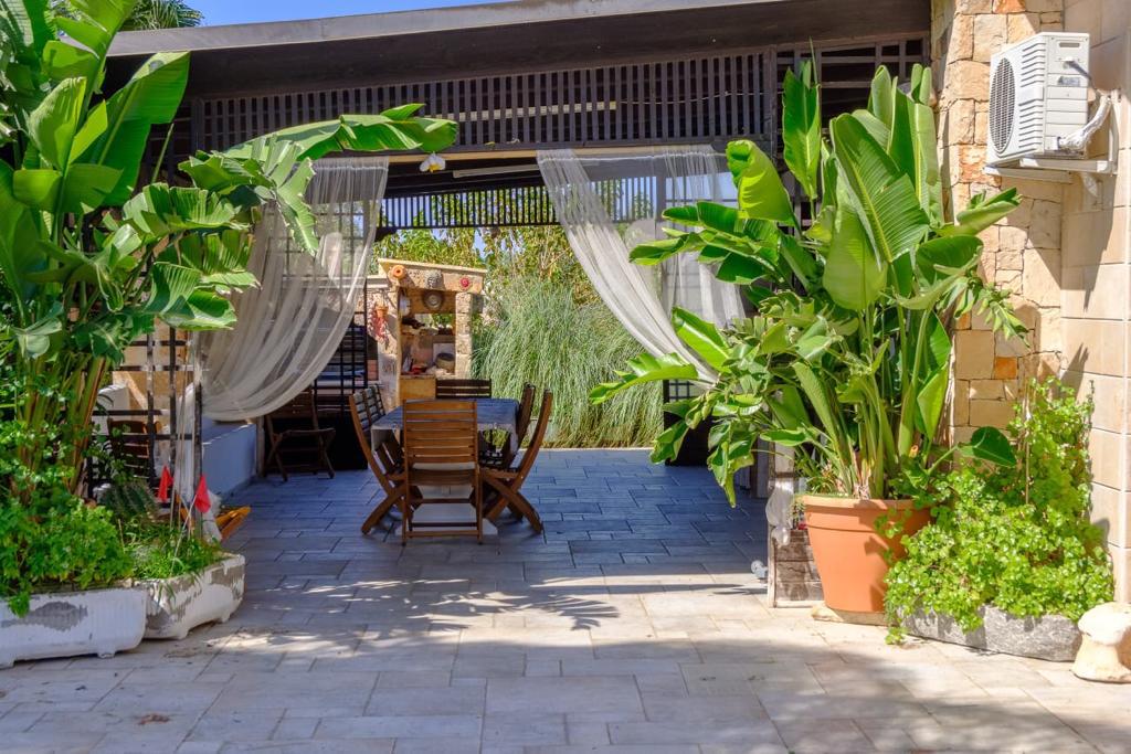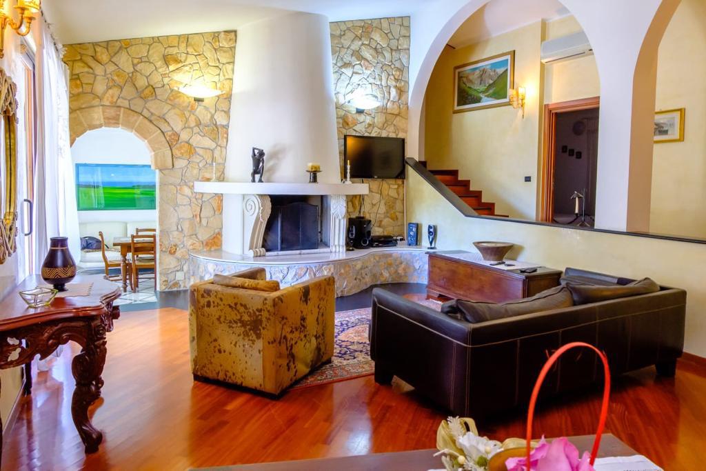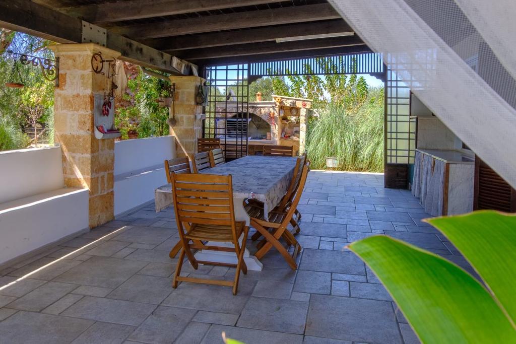 Piscina + televisione + doccia esterna + mobili da giardino e sdraio + ampio spazio per posti auto + climatizzatori (uno in cucina, due nel salotto e 3 nelle camere) + asciugacapelli + barbecue + zanzariere + gazebi esterni + lavatrice + lavello esterno + camino interno + lavastoviglie + microonde + asse e ferro da stiro + wi-fi