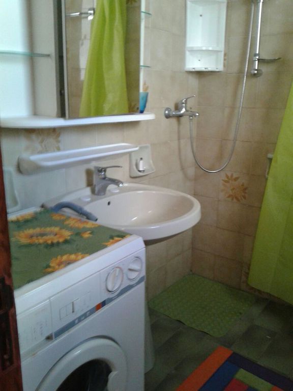 Televisione + ombreggiante + mobili da giardino + lavello esterno + lavatrice + due ventilatori a soffitto